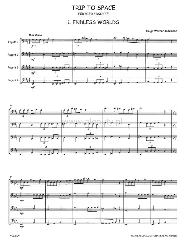 Helga Warner-Buhlmann: Trip to Space for Bassoon Quartet (Score & Parts) - nuty na kwartet fagotowy
