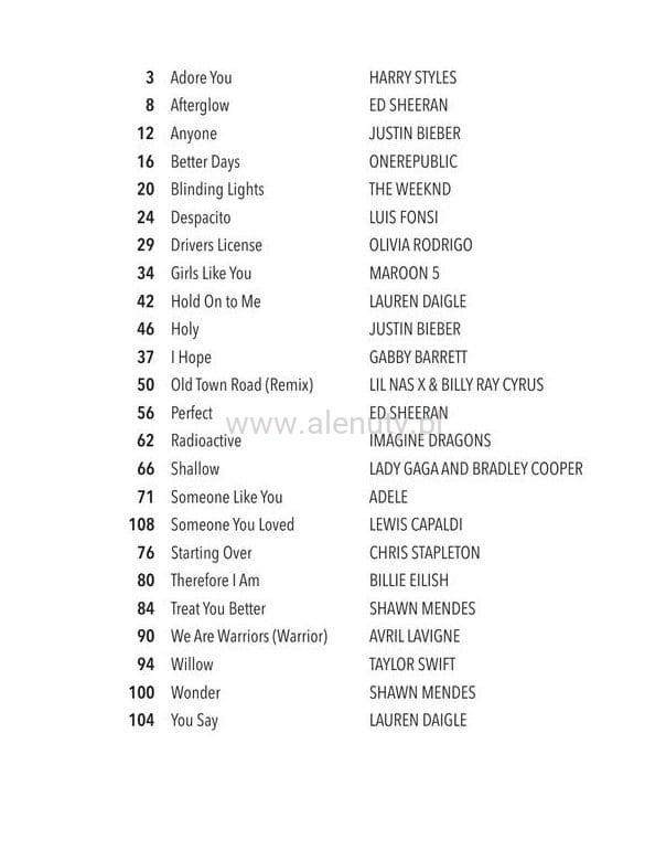 Zbiór światowych hitów w łatwej aranżacji na fortepian dla początkujących. Publikację wyróżnia to, że wszystkie kompozycje ułożone są w możliwe jak najprostszych tonacjach (możliwy tylko jeden krzyżyk lub bemol). Dodatkowo dołączone zostało palcowanie i pomocne instrukcje dla każdego utworu a także słowa do wszystkich piosenek.