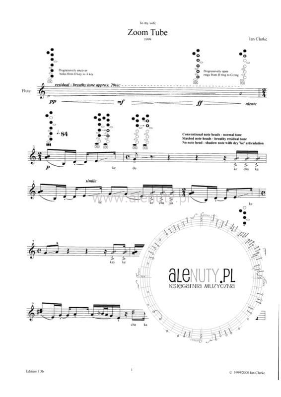 Ian Clarke - Zoom Tube for flute solo - nuty na flet poprzeczny solo