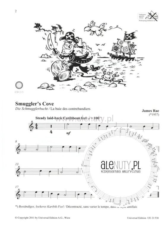 Uczeń znajdzie tu nuty z inspirującymi zabawnymi ilustracjami, które można bezpłatnie pobrać z internetu do kolorowania oraz płytę CD zawierającą wersje demonstracyjne utworów do słuchania oraz podkłady do samodzielnego ćwiczenia.