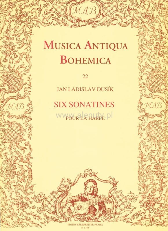 Jan Ladislav Dussek to czeski kompozytor i pianista okresu przejściowego między klasycyzmem a romantyzmem. Dussek był ważnym poprzednikiem romantycznych kompozytorów utworów na fortepian, szczególnie Chopina, Schumanna i Mendelssohna. Wiele jego dzieł brzmi uderzająco nowocześnie, szczególnie, gdy porównać z późnoklasycznym stylem innych kompozytorów, istnieje nawet spór, czy późniejsi kompozytorzy byli zainspirowani przez Dusseka. Ta publikacja zawiera sześć sonatin na harfę kompozycji Dussek'a skomponowanych w lekkim stylu późnego rokoka. W utworach tych swą delikatną muzyczną stylizacją zbliża się do rękopisu muzycznego Mozarta. To sześć drobnych, dwuczęściowych utworów, które zmieniają fragmenty z wolnych i spokojnych na szybsze i rytmicznie. Nuty na dla średnio-zaawansowanych.