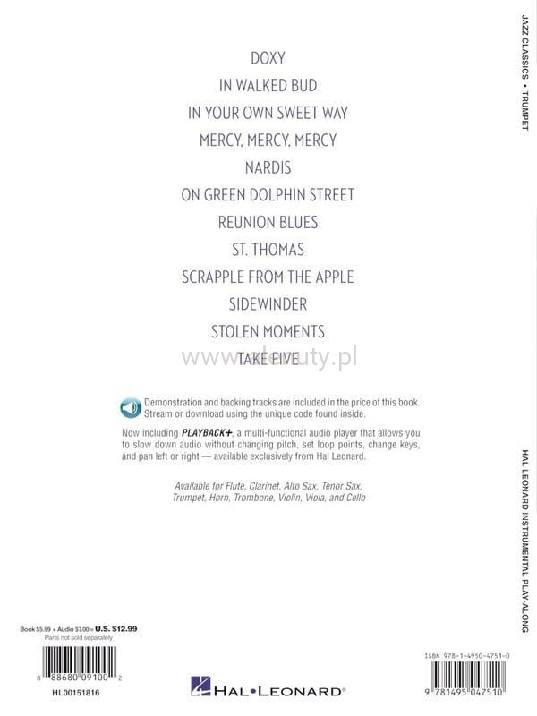 Publikacja zawiera 12 jazzowych klasyków, nuty na trąbkę dla średnio-zaawansowanych.