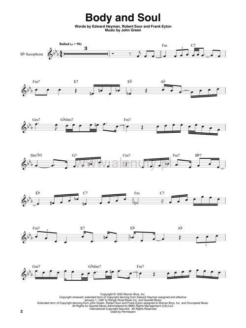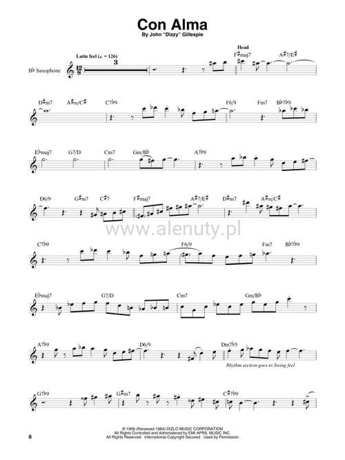 Nuty na saksofon altowy lub tenorowy zbioru ikonicznych hitów jzzowych.