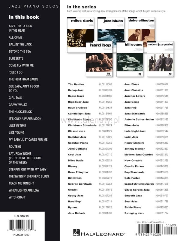 Pozycja z serii: Jazz Piano Solos zawiera unikalną kolekcję 23 klasycznych, swingujących utworów jazzowych zaaranżowanych na fortepian solo, dla średnio-zaawansowanych. Opracowanie zawiera również akordy gitarowe.