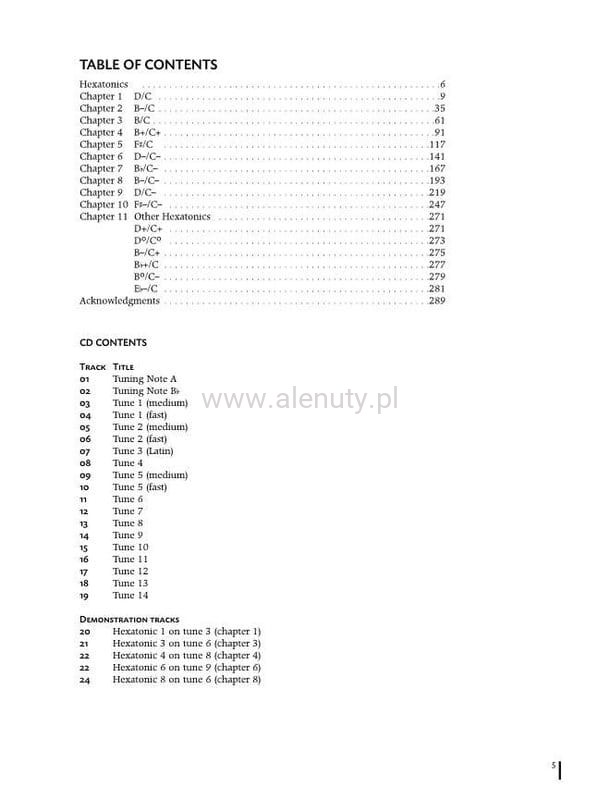 Hexatonics, to siódmy tom serii Jerry'ego Bergonziego „Inside Improvisation”. Skale heksatoniczne to skale sześciu nut. Niniejsza książka przedstawia praktyczną metodę konstruowania skal heksatonicznych, przydatnych zarówno dla improwizatora, jak i dla kompozytora. Wielu współczesnych pianistów używa heksatonicznych brzmień, układając triady w celu stworzenia szczególnej harmonii. Improwizujemy w brzmieniu dźwięczności, używając heksatonicznych głosów i linii, możemy nadać bardzo współczesne brzmienie. Do książki dołączona jest płyta CD z plikami audio lub MP3. Znajdziesz na niej 24 utwory (w tym 5 utworów demonstracyjnych z Jerrym), aby wypróbować wszystkie te różne dźwięki. W skład zespołu wchodzą Renato Chicco - fortepian, Dave Santoro - bas i Andrea Michelutti - perkusja. Książka przeznaczona jest dla wszystkich instrumentów, dla średnio-zaawansowanych muzyków.