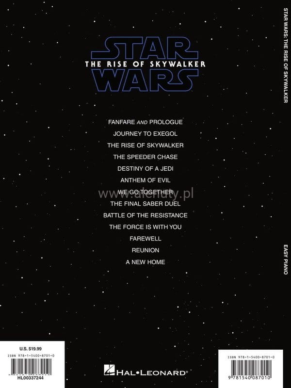 Skywalker Odrodzemie to ostatni film Gwiezdnych Wojen, do którego John Williams komponował ścieżkę dźwiękową. Ta kolekcja zawiera 13 aranżacji na fortepian w łatwym układzie dla początkujących.