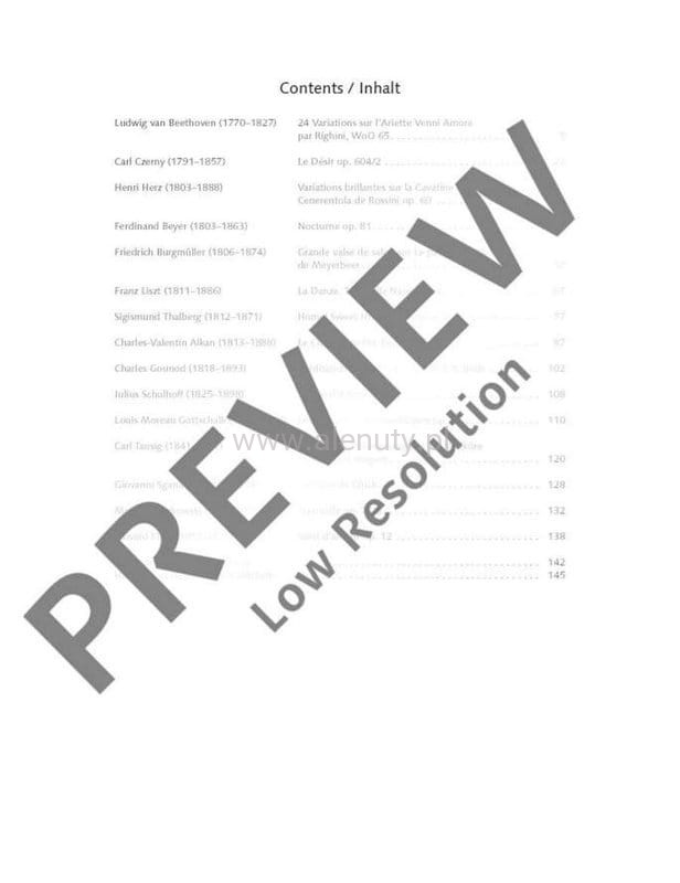 Publikacja skierowana jest do średnio zaawansowanych i zaawansowanych pianistów poszukujących nowych, interesujących utworów poza standardowym repertuarem. W tym wyjątkowym wydaniu zostały zaprezentowane muzyczne skarby odkopane z archiwów wydawnictwa Schott. Aby uczcić 250 rocznicę powstania Schott Music utwory te zostały ponownie zredagowane i wydane. Nuty zawierają głównie dzieła z epoki romantyzmu, utwory o charakterze ekspresyjnym i wirtuozowskim, a także klejnoty muzyki salonowej oraz rozbudowane aranżacje znanych melodii (operowych). Kompozycje i aranżacje zostały napisane przez wielkich wirtuozów fortepianu XIX wieku.
