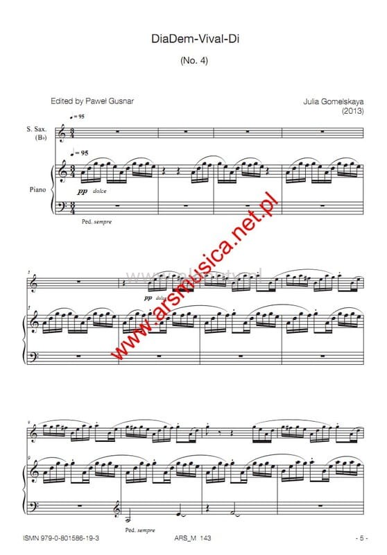 - DiaDem-Vival-Di (No. 4) – na saksofon sopranowy i fortepian (Julia Gomelskaya)