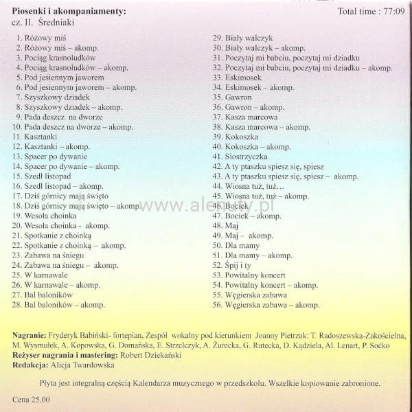 Tytuł: Kalendarz muzyczny w przedszkolu - CD 2 Średniaki - piosenki i akompaniament