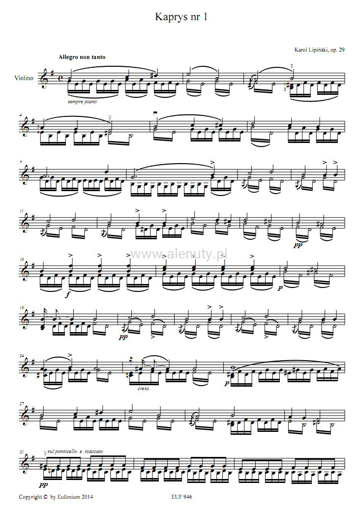 Kaprysy op. 29 na skrzypce - nuty na skrzypce solo - Karol Lipiński, Zbigniew Pilch