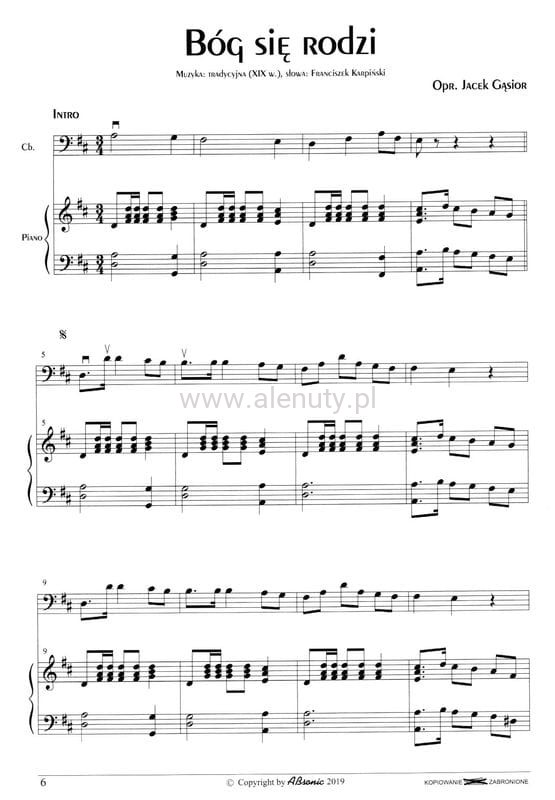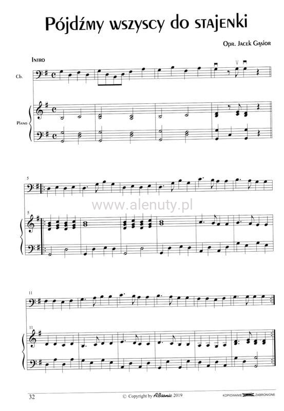 Kolędy w duecie - kontrabas i fortepian - Jacek Gąsior - nuty do kolęd na kontrabas z fortepianem