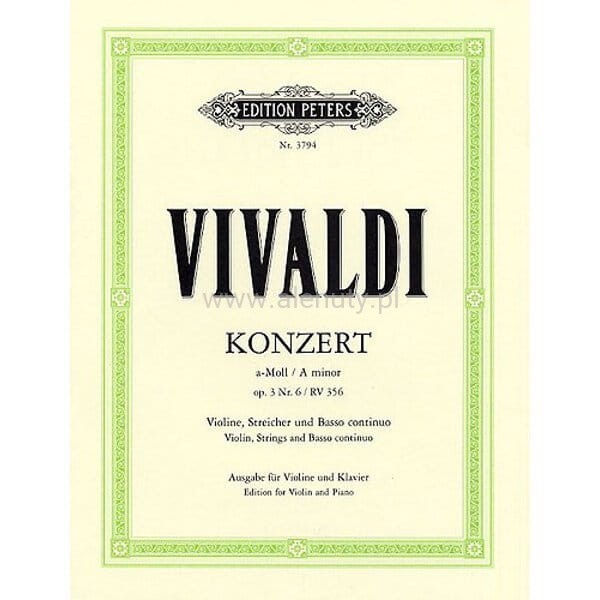 Concerto in La minore Op. 3 nr 6 (RV 356) - Antonio Vivaldi - nuty na skrzypce i fortepian