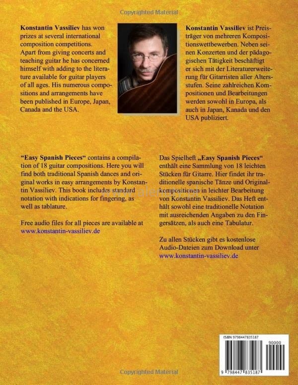 Książka zawiera kompilację 18 kompozycji gitarowych. Znajdziesz tu zarówno tradycyjne tańce hiszpańskie, jak i oryginalne dzieła w łatwych aranżacjach Konstantina Vassilieva. Książka ta zawiera standardową notację ze wskazaniami do palcowania, a także tabulaturę. Nuty dla średnio-zaawansowanych.
