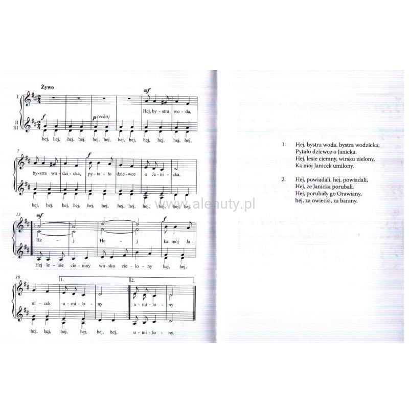 Kolekcja 17 pieśni i piosenek ludowych w prostym opracowaniu nutowym Honoraty Cybuli na głosy równe, przeznaczone dla początkujących i średnio-zaawansowanych wykonawców.