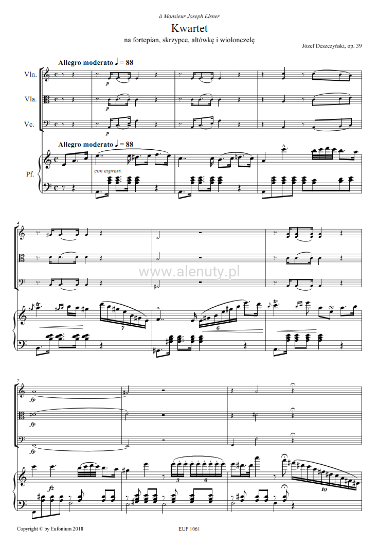 Tytuł: Kwartet op. 39 na skrzypce, altówkę, wiolonczelę i fortepian