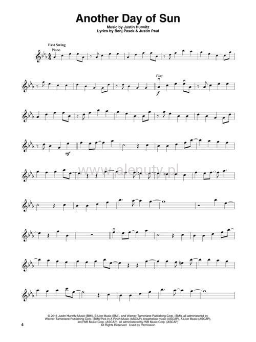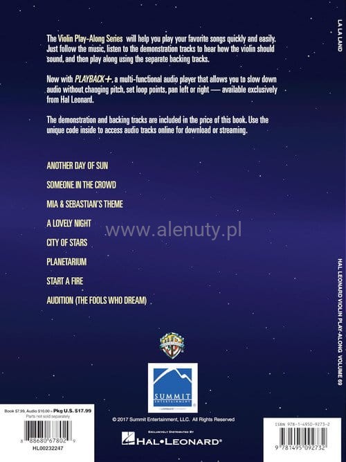 Zbiór utworów z filmu 'La La Land' w opracowaniu na skrzypce. Podobnie jak w przypadku innych elementów serii 'Instrumental Play-Along', wraz z nutami dostępne są nagrania profesjonalnego wykonania utworów ze zbioru oraz podkładu (backing tracks).