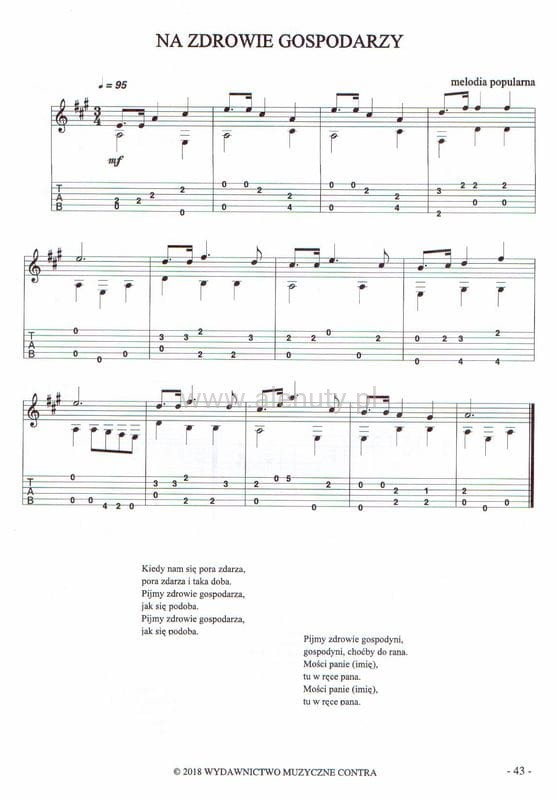 Łatwe piosenki biesiadne - nuty na gitarę klasyczną (fingerpicking) z tabulaturami
