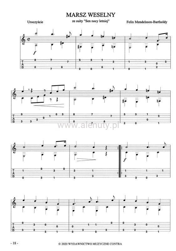 Kolekcja najpopularniejszych utworów Felixa Mendelssohna w opracowaniu Marka Pawełka na gitarę klasyczną, dla początkujących.
