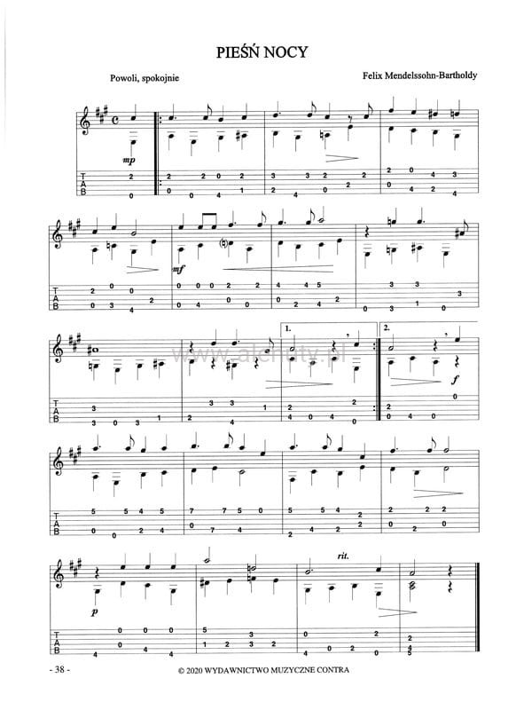 Łatwy Mendelssohn - nuty na gitarę klasyczną (fingerpicking) z tabulaturami - Marek Pawełek