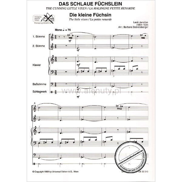 Leos Janacek - Przygody Liska Chytruska - na zespół dziecięcy - trio o zmiennym składzie, fortepian i perkusję