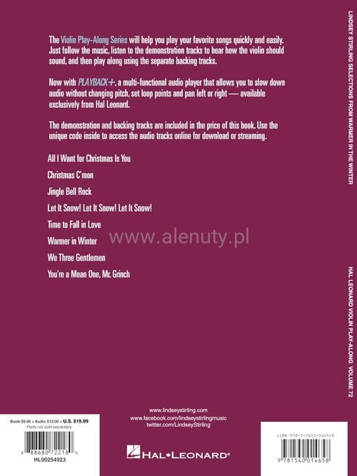Nuty na skrzypce dziewięciu utworów z wypuszczonego w 2017 albumu amerykańskiej skrzypaczki dubstepowej, Lindsey Stirling, 'Warmer in the Winter'. Do książki dołączony jest specjalny kod umożliwiający dostęp do materiałów muzycznych przez Internet. Dostęp możesz uzyskać za pomocą komputera, smartfonu i tabletu. Pliki audio zawierają m.in. wersje demo oraz podkłady do zagrania każdego utworu i są w cenie książki. O tym w jaki sposób uzyskać do nich dostęp przeczytasz >>> w artykule