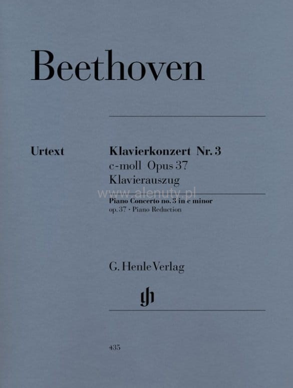 Ludwig van Beethoven skomponował pięć dużych koncertów fortepianowych na przestrzeni dwudziestu pięciu lat. Kiedy pod koniec XIX wieku kompozytor sprzedał swoje pierwsze dwa koncerty fortepianowe, pozostałe zachował do czasu wyjazdu w trasę koncertową. Chciał podczas niej przedstawić swój Trzeci Koncert fortepianowy c-moll, zaprezentowany w tej publikacji w redukcji fortepianowej. To wydanie Urtext, jest oparte na wydaniu kompletnym Beethovena, którego autograf posłużył jako źródło. Szczegółowa przedmowa redaktora - autorstwa badacza Beethovena Hansa-Wernera Küthena - zawiera cenne informacje na temat wydania. Aranżacja na dwa fortepiany, nuty dla zaawansowanych.