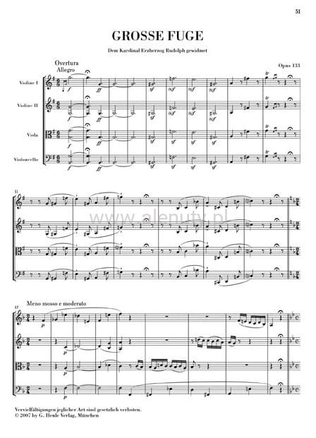 Zapis nutowy na kwartet smyczkowy dla średnio-zaawansowanych, wydany w oparciu o urtekst Gesamtausgabe Beethovena.