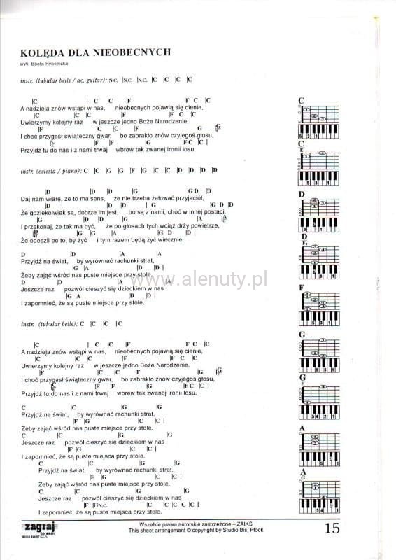 Notacja muzyczna: zapis nutowy, akordy z diagramami