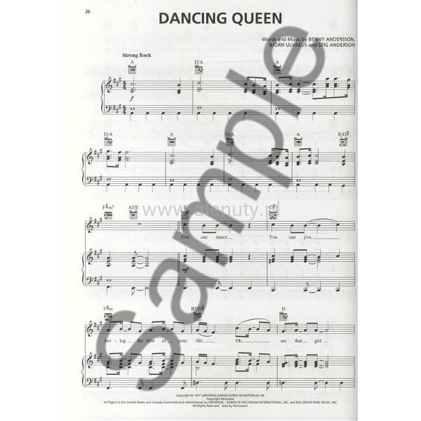 Kolekcja utworów z filmowego hitu 'Mamma Mia' w opracowaniu na fortepian, gitarę i wokal. Wydania oznaczone jako PVG (Piano Vocal Guitar - Fortepian Melodia Gitara) zawierają zapis nutowy linii melodycznej, nuty na fortepian, akordy gitarowe oraz słowa do piosenek zamieszczonych w publikacji. Więcej o nutach PVG przeczytasz >>> w artykule