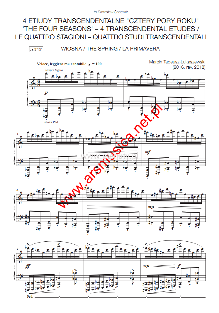 Marcin Tadeusz Łukaszewski: 4 Etiudy transcendentalne 'Cztery pory roku' - nuty na fortepian