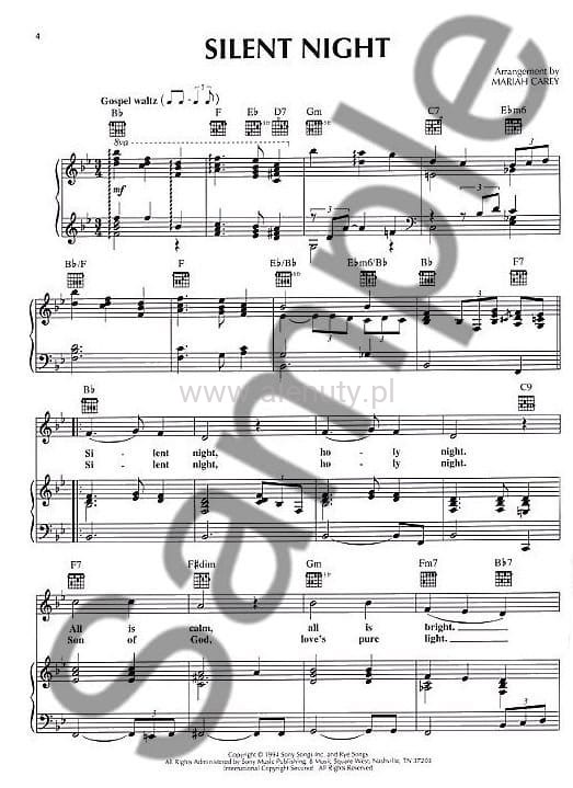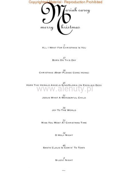 Nuty na fortepian, głos i gitarę (PVG), dziewięciu wybranych piosenek świątecznych autorstwa Mariah Carey.