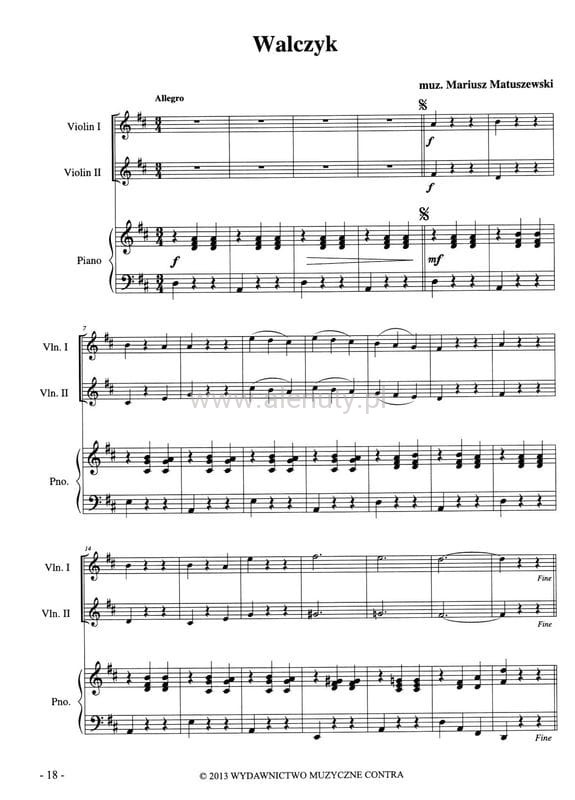 Mariusz Matuszewski: Łatwe utwory na dwoje skrzypiec i fortepian - nuty na duet skrzypcowy i fortepian