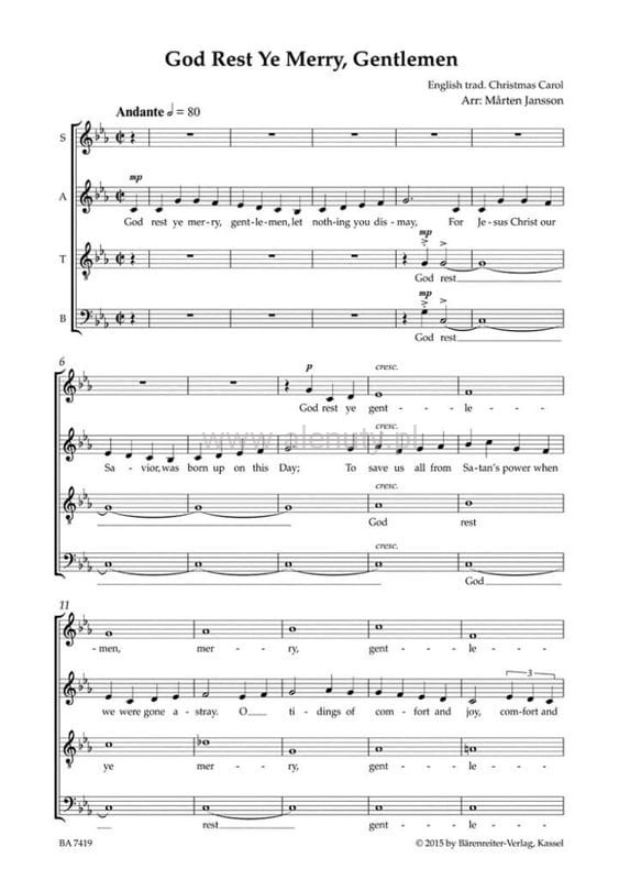 Marten Jansson: God Rest Ye Merry Gentlemen - kolęda na chór mieszany SATB