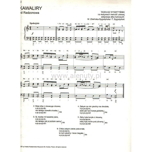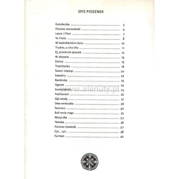 Publikacja zawiera 25 piosenek z repertuaru zespołu ludowego Mazowsze, w adaptacji i opracowaniu na fortepian przez Tadeusza Sygietyńskiego oraz Mirę Zimińską- Sygietyńską. Każda piosenka jest w zapisie nutowym na fortepian, ale partię fortepianu można zrealizować również na akordeonie. Dodatkowo akordy i pełen tekst do każdego utworu. Nuty dla początkujących i średnio-zaawansowanych.