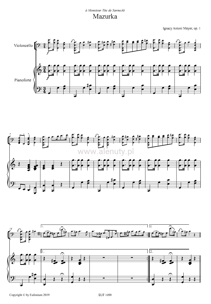 Tytuł: Mazurek op. 1 na wiolonczelę i fortepian