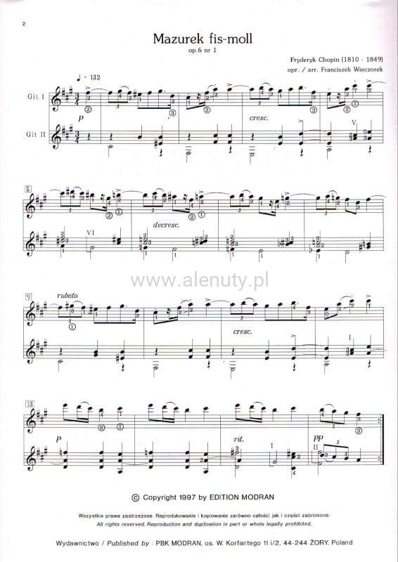 Mazurki w transkrypcji na dwie gitary - Fryderyk Chopin, Franciszek Wieczorek