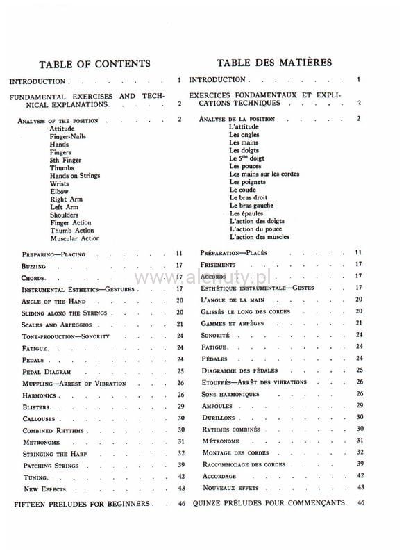 Praktyczny podręcznik do nauki gry na harfie dla początkujących. Znajdziesz tu: szereg łatwych ćwiczeń, pomocne ilustracje, wiele technicznych wskazówek i piętnaście preludiów dla początkujących. Wydanie w języku angielskim i francuskim.