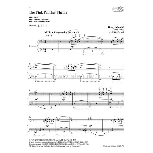 Pozycja zawiera kolekcję 5 utworów z popularnej serii “Tea for Two” zaaranżowanych przez Mike'a Cornicka na duet fortepianowy. Znajduje się tu temat przewodni ze słynnej Różowej Pantery i inne.