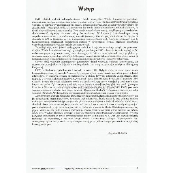 Mirosław Drożdżowski: Melodie ludowe na fortepian Witolda Lutosławskiego w opracowaniu na gitarę klasyczną (+ mp3 online)