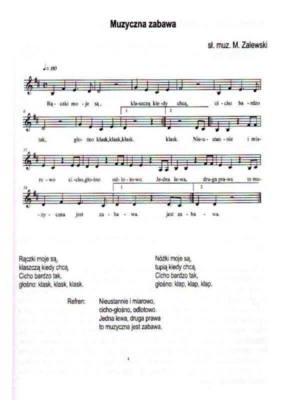 Notacja muzyczna: zapis nutowy, słowa, teksty scenariuszy i zabaw
