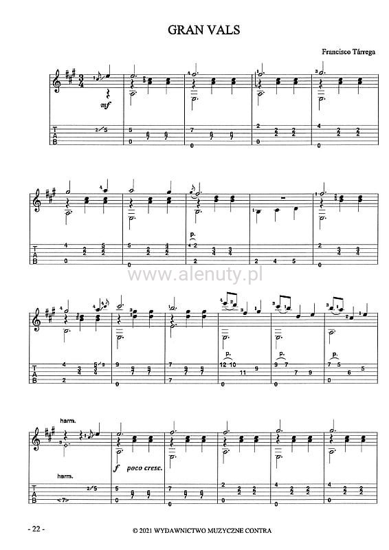 Kolekcja utworów hiszpańskiego gitarzysty i kompozytora Francisco Tarrega, w opracowaniu nutowym i tabulaturowym na gitarę klasyczną lub akustyczną.