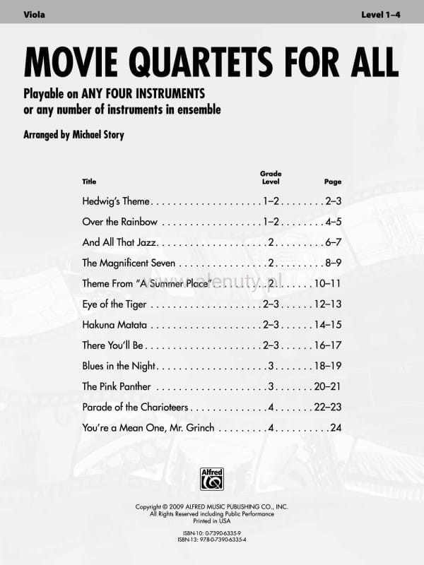 Tytuł: Movie Quartets for All: Viola