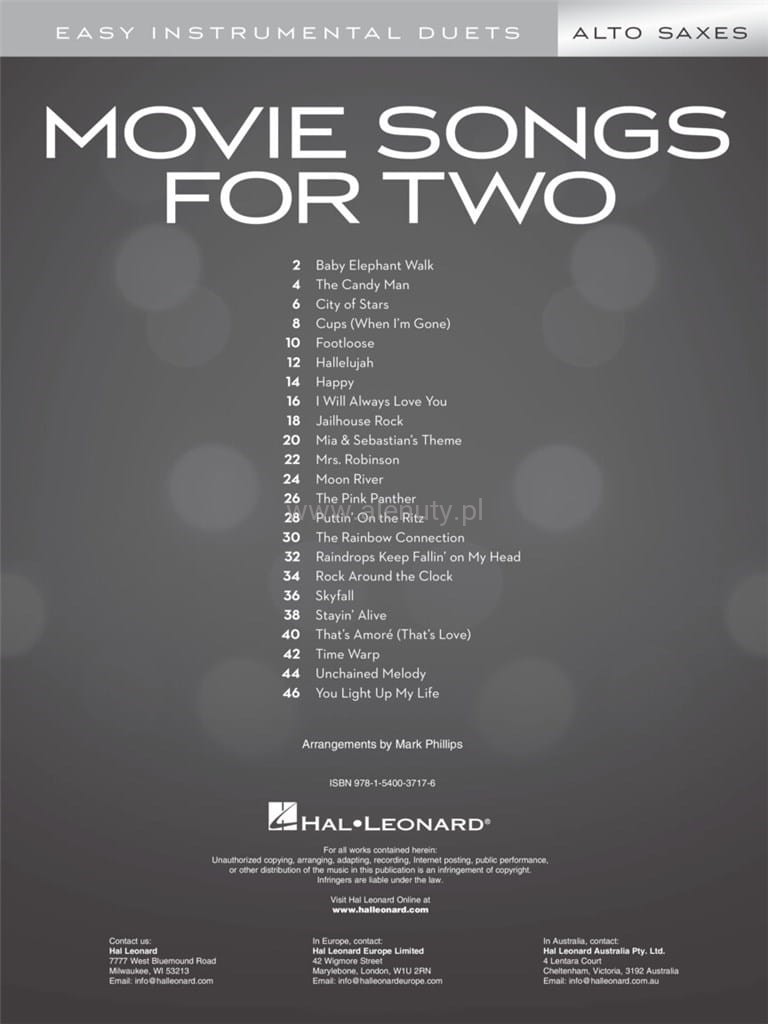 Movie Songs for Two Alto Saxophones - łatwe nuty na dwa saksofony altowe