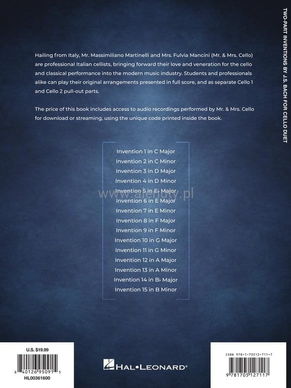 Mr & Mrs Cello: Two Part Inventions by J.S. Bach for Cello Duet (+ audio online) - duety wiolonczelowe - nuty na dwie wiolonczele