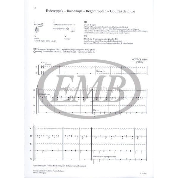 Seria "Musica Da Camera for music schools" to utwory skomponowane lub zaaranżowane na różne zespoły kameralne (tria i kwartety) dla szkół muzycznych. W proponowanej pozycji znajdują się 4 współczesne kompozycje trzech kompozytorów na perkusję, dla czterech, pięciu i sześciu wykonawców.