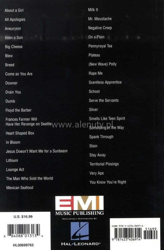 Teksty i akordy wraz z diagramami do 40 najpopularniejszych utworów zespołu Nirvana.