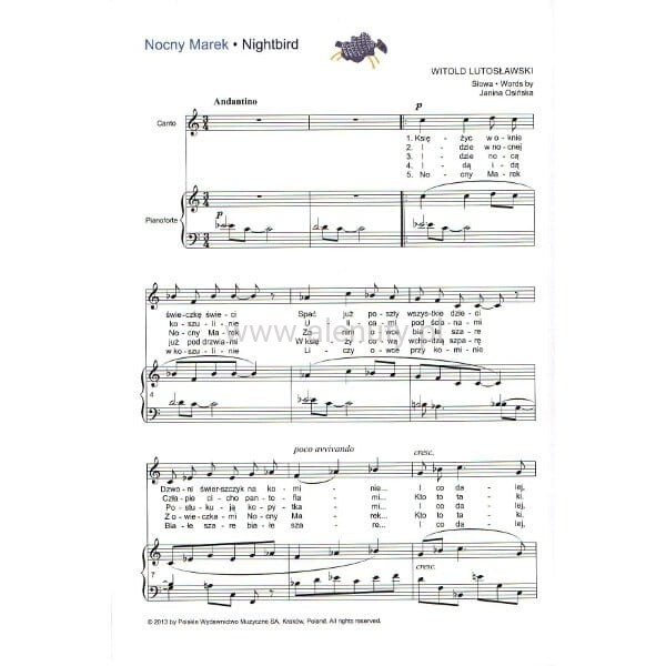 Nocny Marek i inne piosenki dziecięce na głos i fortepian (+ płyta CD) - Witold Lutosławski