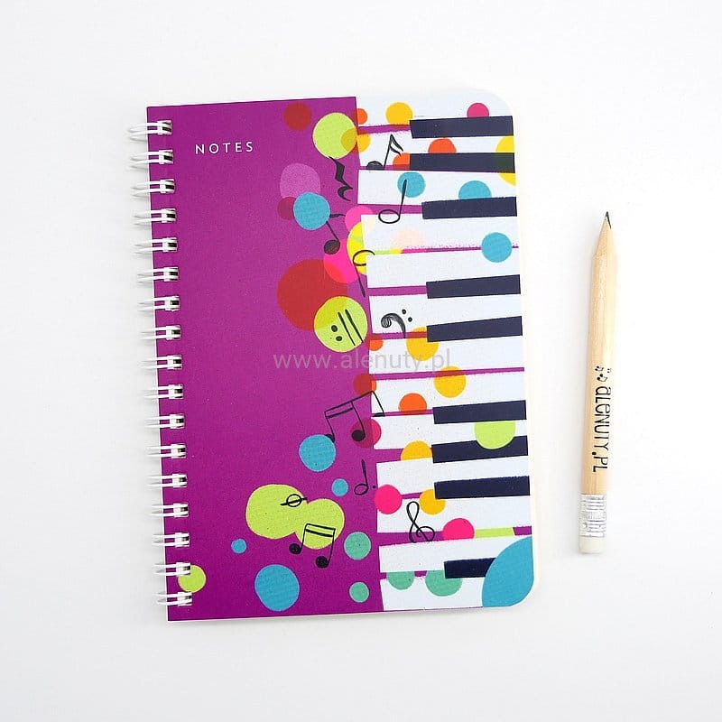Notes na spirali w pięciolinię format A6 motyw Klawiatury 50 stron miękka okładka