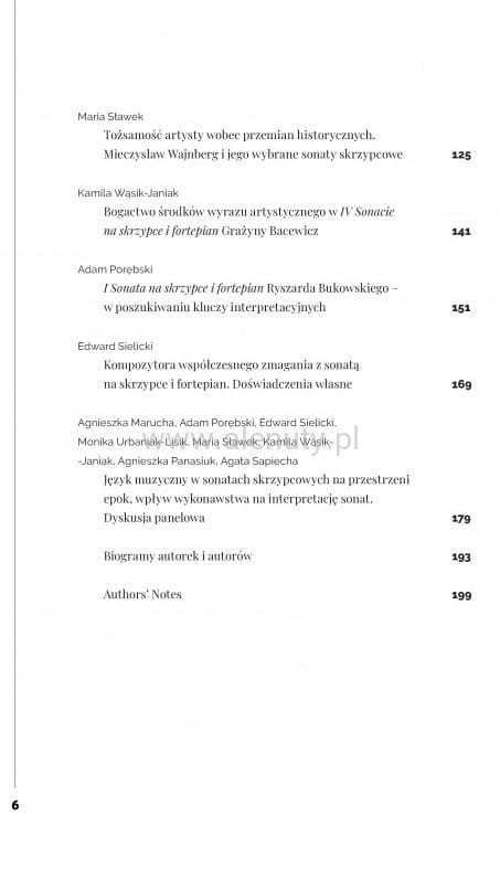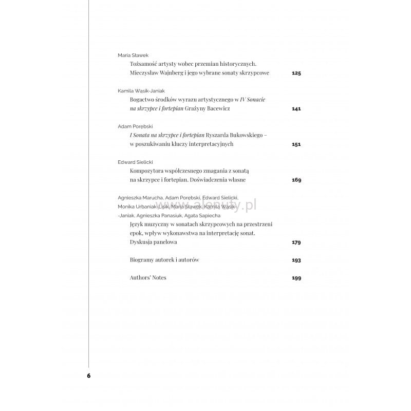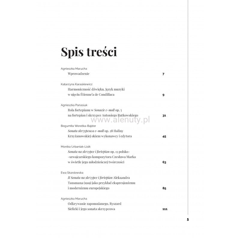 Publikacja zawiera zbiór przemyśleń muzyków reprezentujących wiolinistykę i pianistykę kameralną opracowanych przez Agnieszkę Maruchę. Jest to ogromnie ceniona, a przy tym oryginalna propozycja wydawnicza, której ogromnym walorem jest zwrócenie uwagi na praktyczne problemy wykonawcze i interpretacyjne. Książka przeznaczona jest dla koncertujących artystów oraz studentów wiolonistyki i kameralistyki, którzy znajdą w niej wiele intersujących sugestii.