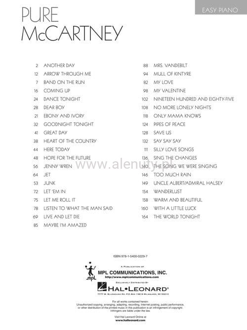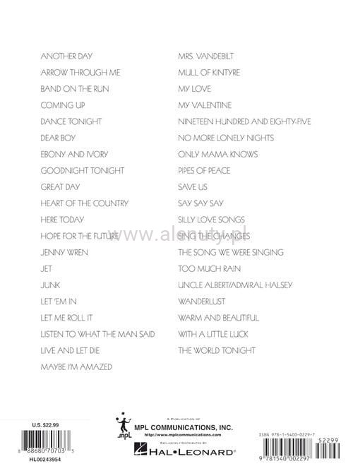 Nuty na fortepian (pianino) 39 hitów Paul'a McCartney'a z całego okresu jego wielkiej kariery.